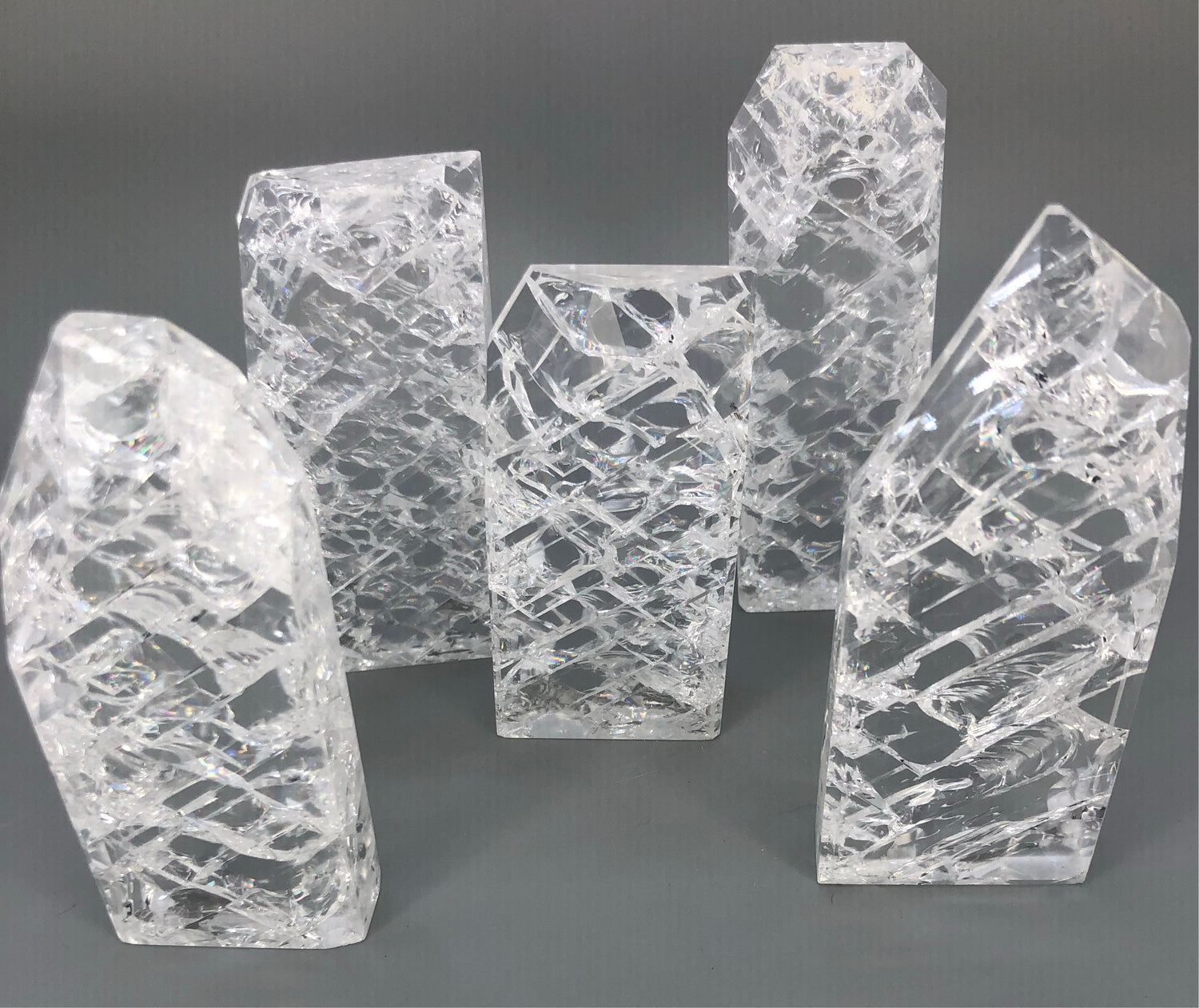 - Crackle Quartz is formed by a drastic temperature change from heating the Crystalline quartz to excessive temperature and then quickly cooling in ice-cold water. This process creates fractures that produce vibrant rainbows throughout the crystal.