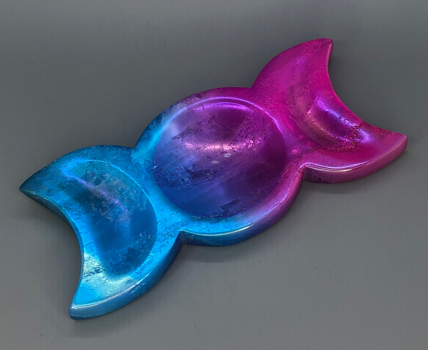 Satin Spar Selenite Aura Triple Moon Trinket Dish
